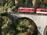 Wir haben außer einigen Dioramen auch einige große Anlagen gebaut. Unsere Bauweise können Sie im Fotoalbum kennenlernen. Im Menü Dioramen finden Sie Dioramen die wir gebaut haben. Wir werden die neu erbauten Dioramen ebenfalls hier Einstellen und das eine oder andere zum Verkauf anbieten. Ansonsten fertigen wir nach Ihren Vorgaben. Anregungen für Ihr Wunschdiorama finden Sie ebenfalls im Fotoalbum und natürlich beim Vorbild. Die Dioramen werden auf einem stabilen Grundrahmen aufgebaut. Die Landschaft wird mit Draht- oder Kunststoffgewebe und Gipsprodukten geformt. Die Felsen bestehen aus Gipsabdrücken von echten Steinen oder werden anderweitig mit Gips geformt. Gegebenenfalls wird auch mit Gips überzogenes Styropor als Grundlage für die Felsen verwendet. Zur Dekoration verwenden wir Produkte namhafter Hersteller und/oder selbst veredelte Naturprodukte. Wir verwenden je nach Wunsch verschiedene Gleismaterialien: Märklin K-Gleis für Wechselstrom, Roco Line für 2-Leiter Gleichstrom H0 und Bemo Gleise für die Schmalspuren H0m und H0e. Alternativ bauen wir auch mit Tillig Elite und Peco-Gleisen. Auf Wunsch verbauen wir auch die hervorragenden Materialien von anderen Herstellern wie z.B. Pirovino und art&web